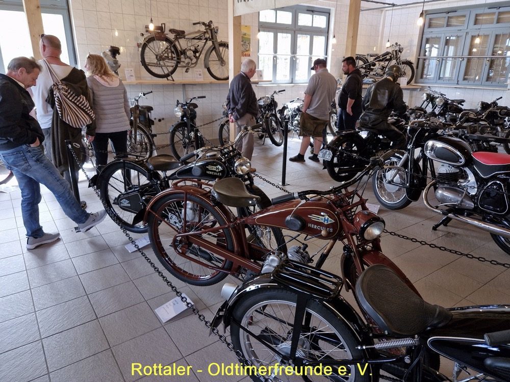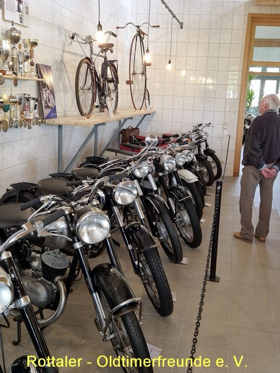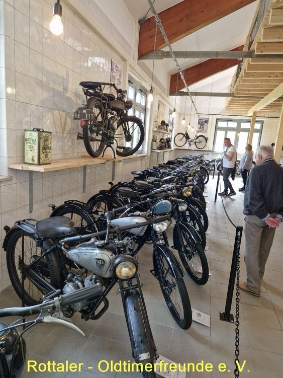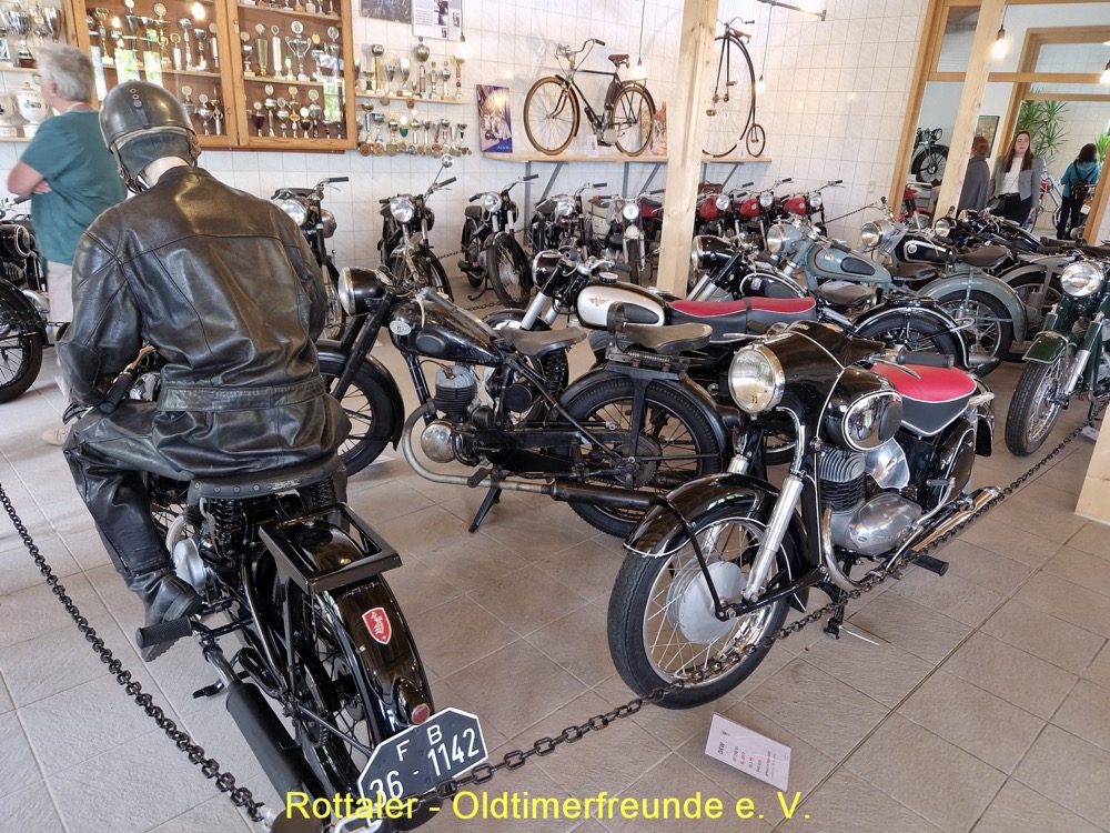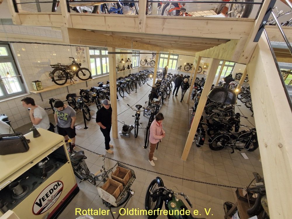 Nach dem Essen fuhren wir mit unseren 18 Oldtimerfahrzeugen weiter zum Motorradmuseem nach St. Englmar. Hier werden auf 400 qm Ausstellungsfläche ca. 200 deutsche Motorräder, Mopeds und Fahrräder aus den 20er bis 80er Jahren, von Adler, BMW, DKW, Express, Hercules, Miele, NSU, Triumph, Victoria, Wanderer, Zündapp und vielen anderen Marken ausgestellt. Es ist ein interessantes Museum in einem neu gebauten Gebäude. https://www.bayerischer-wald.me/detail/id=647ed9b8673b337f036b6387