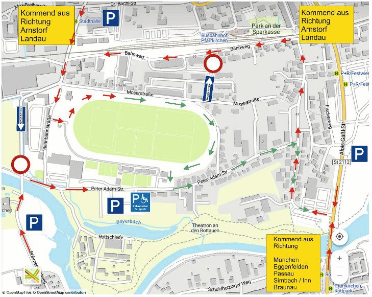 • Einfahrt: ausschließlich über die Rennbahnstraße (Haupteingang)